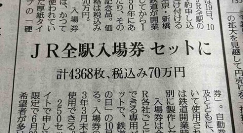 JR全駅の入場券が発売に!