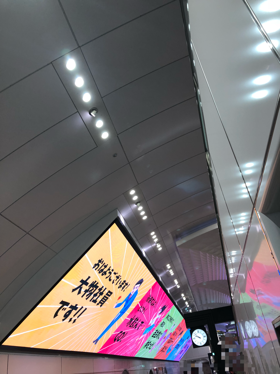 画像は今月14日に撮影した大阪メトロ御堂筋線の梅田駅の巨大モニター『Umeda Metro Vision』です。この巨大モニターは今月1日から放映が開始されていて、御堂筋線の車両2両分の長さがあり、『地下空間における世界最大のモニター』としてギネスに認定されています。画像では分かりづらいですが、このモニターの下辺りにそのことを示すギネスの認定証のレプリカのようなものが掲出されています。このモニターでは広告等が放映されています。このモニターの設置場所は、大阪メトロ御堂筋線の梅田駅の上り(新大阪駅・江坂駅・千里中央駅方面)ホームの南側(淀屋橋駅側)に設置されています。この『Umeda Metro Vision』について詳しくは先月1日に大阪メトロのホームページにて発表された記事(https://subway.osakametro.co.jp/news/news_release/20191101_umedametrovision.php)