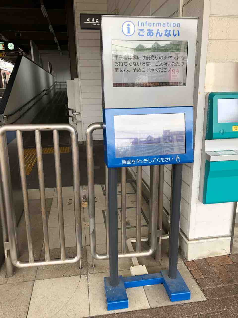 阪神電車の駅でよく見かけるこのタッチパネルは、上の方は阪神電気鉄道や阪神タイガースや阪神甲子園球場などの阪神電気鉄道関連施設などからのお知らせなどが表示されます。下のタッチパネルでは、阪神電車の駅の情報や時刻表などが閲覧できるようです。阪神電車の駅ならどこの駅(武庫川線の東鳴尾駅・洲先駅を除く)にも改札付近に設置されています。たいていの駅は改札外に設置されていると思います。阪神電気鉄道のホームページによりますと、このタッチパネルは2017年から順次阪神電車の各駅に設置されているようです。詳しくは阪神電気鉄道のホームページ内の記事(https://www.hanshin.co.jp/company/press/detail/1869、