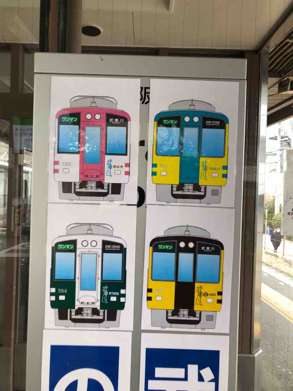 です。このイラスト付き案内表示は、武庫川駅の武庫川線ホームの待合室の改札(北側の中間改札)寄りにあります。