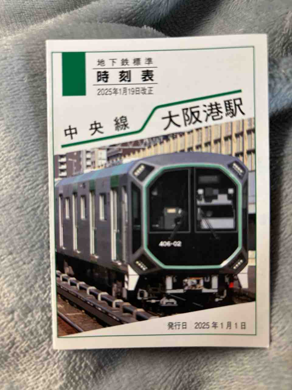 だと思われます。大阪港駅の近くには海遊館や天保山マーケットプレイスがあります。観光客はご存知ないと思いますが、大阪港駅からは【日本で2番目に低い山】として有名な『天保山』があります。『天保山』は一見こんもりした低い丘のように見えますがれっきとした山です。天保山の標高は僅か『4.53m』です。画像は大阪メトロ中央線の大阪港駅のポケット時刻表です。このポケット時刻表は大阪港駅の改札付近の券売機辺りや駅長室や改札室で入手可能です。