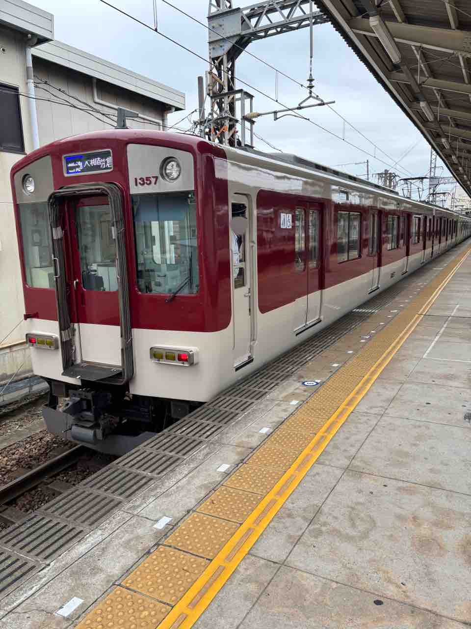 で撮影した近鉄大阪線の1253系1357Fです。なお画像の一部をモザイク処理しています。
