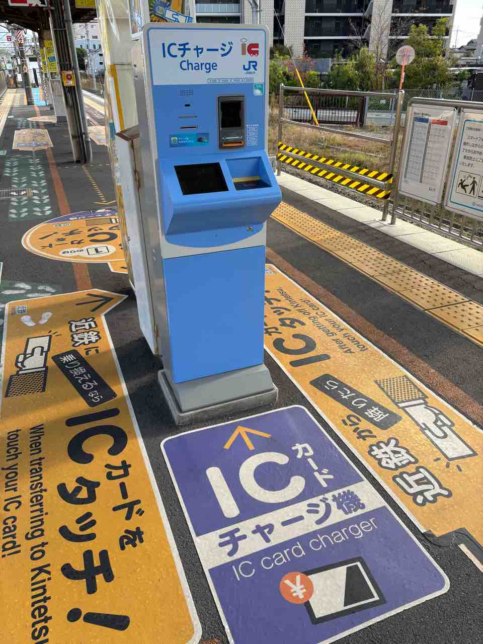 画像は今月11日に柏原駅で撮影したJR西日本の新型ICカードチャージ機です。ICOCAやSuicaなどをチャージする(https://www.jr-odekake.net/icoca/guide/charge/icoca/ticketvendor.html)